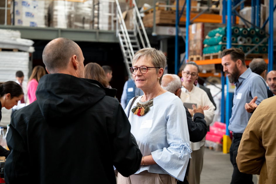 Lors de cette Matinale, une trentaine de participantes et participants ont visité, en compagnie de la maire, Sonja Molinari, la société Balestrafic SA, installée à Carouge.