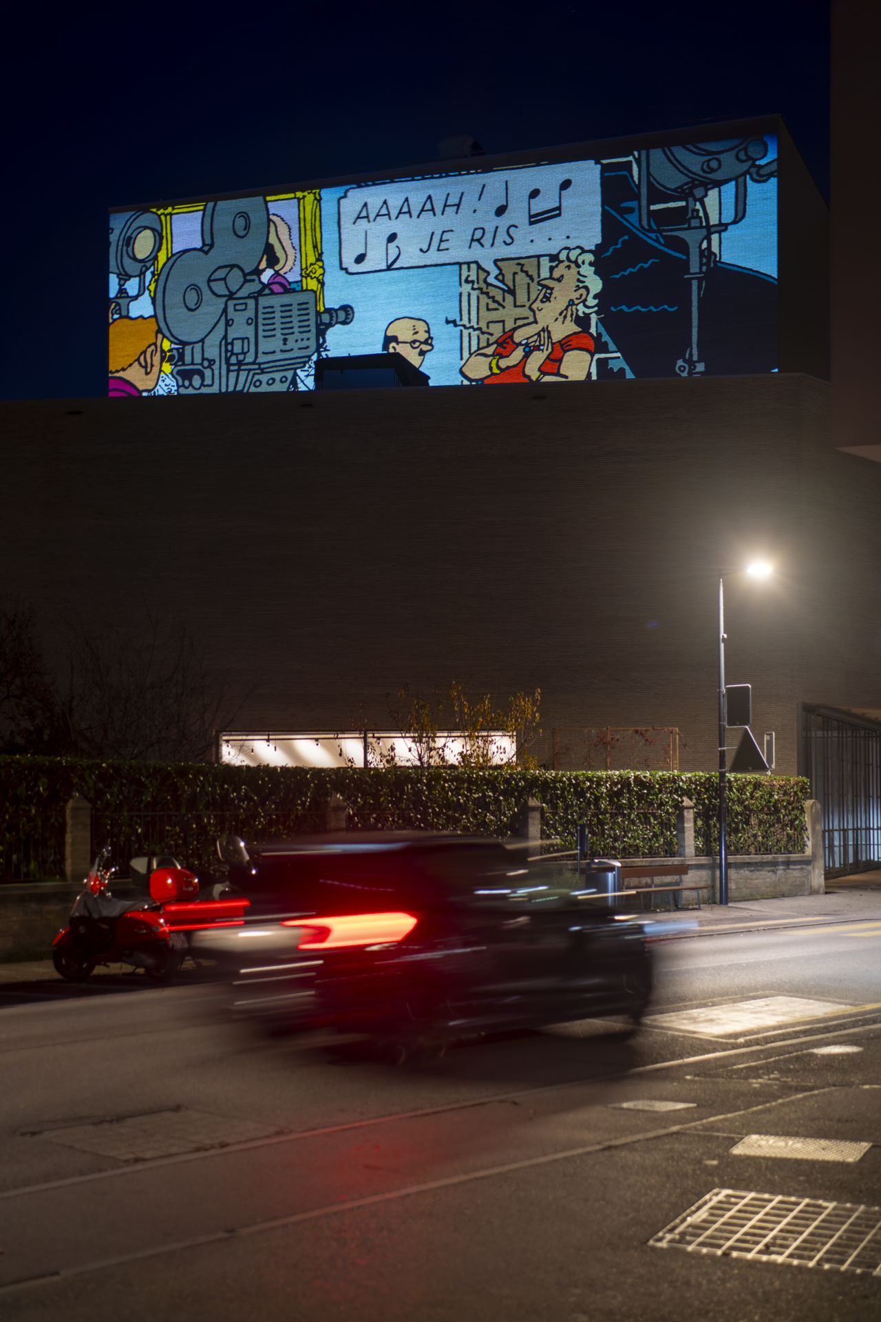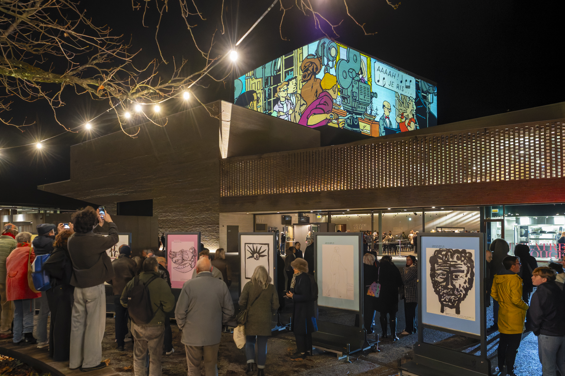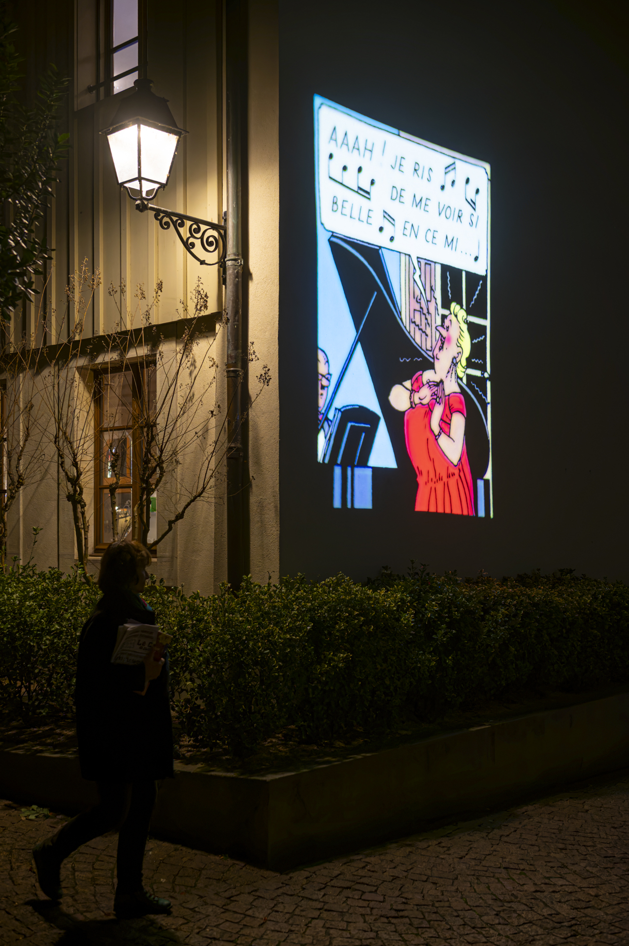 En présence de Patrick Mutzenberg, conseiller administratif de la Ville de Carouge, ainsi que de François Bellanger, président de l’association Carouge fête la BD ! (CFB!), de Georges Schürch, président de la Fondation du Théâtre de Carouge, et d'Arthur Anthamatten, membre de l’association (CFB!), la soirée a également permis la découverte des projections lumineuses.