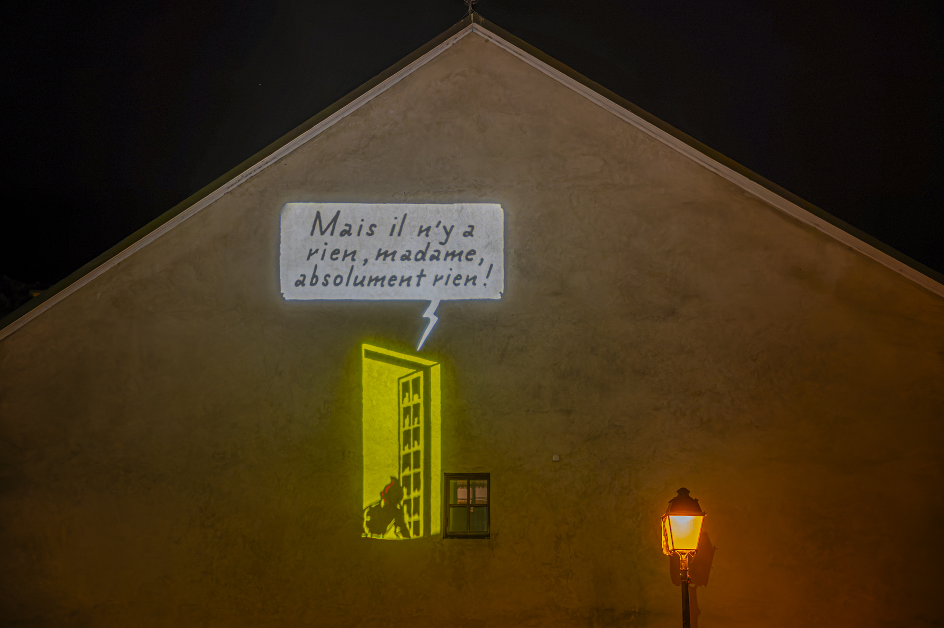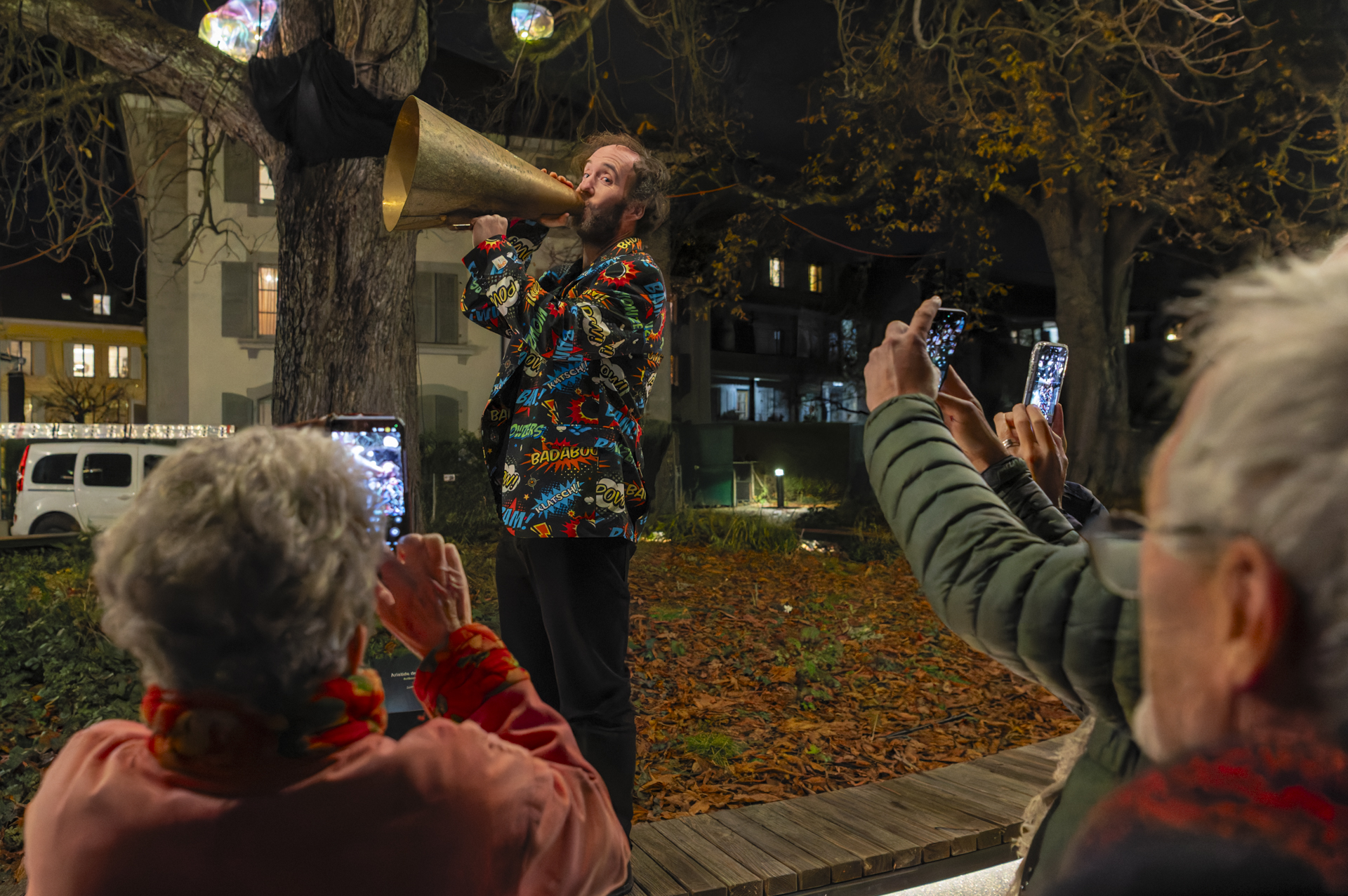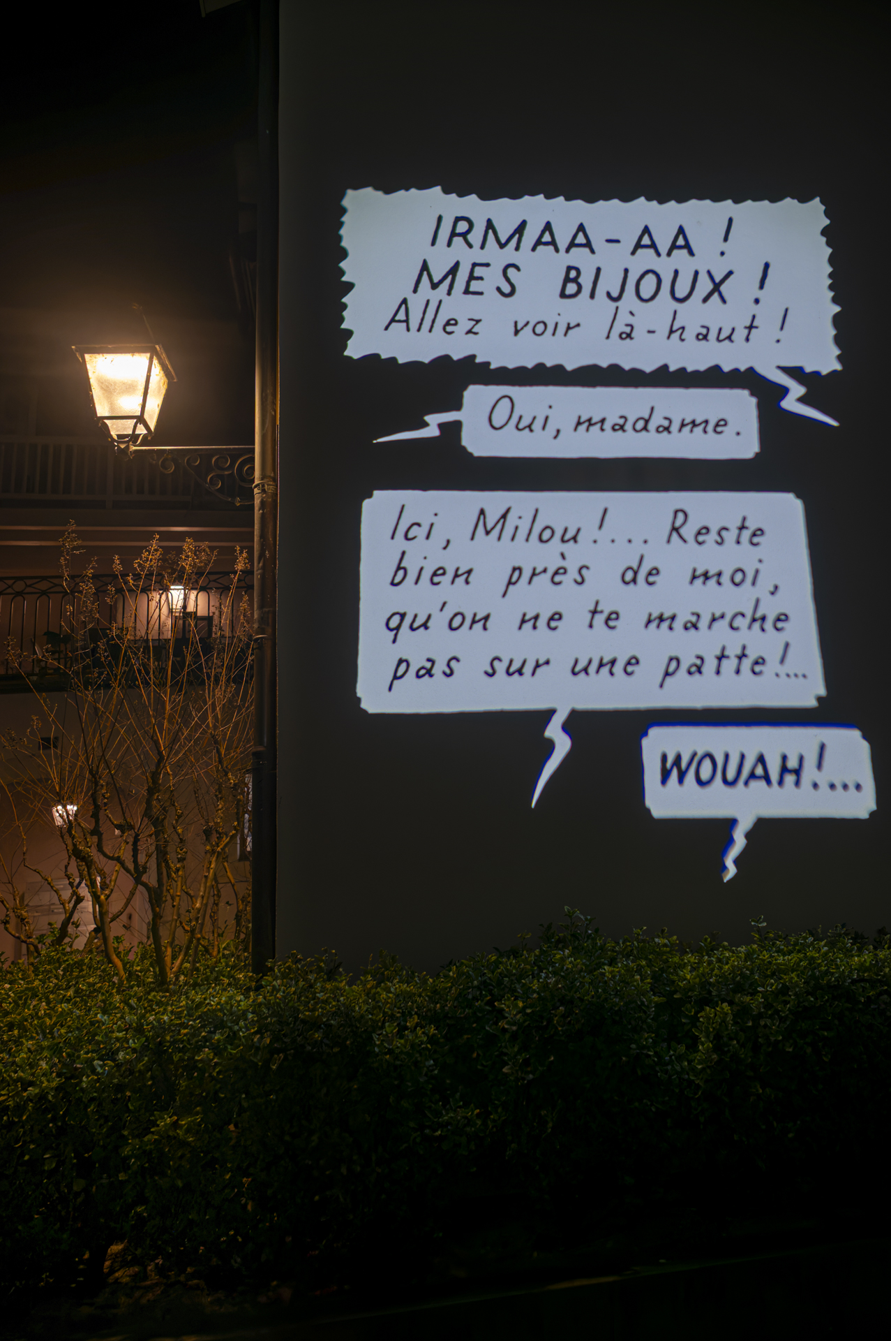 En présence de Patrick Mutzenberg, conseiller administratif de la Ville de Carouge, ainsi que de François Bellanger, président de l’association Carouge fête la BD ! (CFB!), de Georges Schürch, président de la Fondation du Théâtre de Carouge, et d'Arthur Anthamatten, membre de l’association (CFB!), la soirée a également permis la découverte des projections lumineuses.
