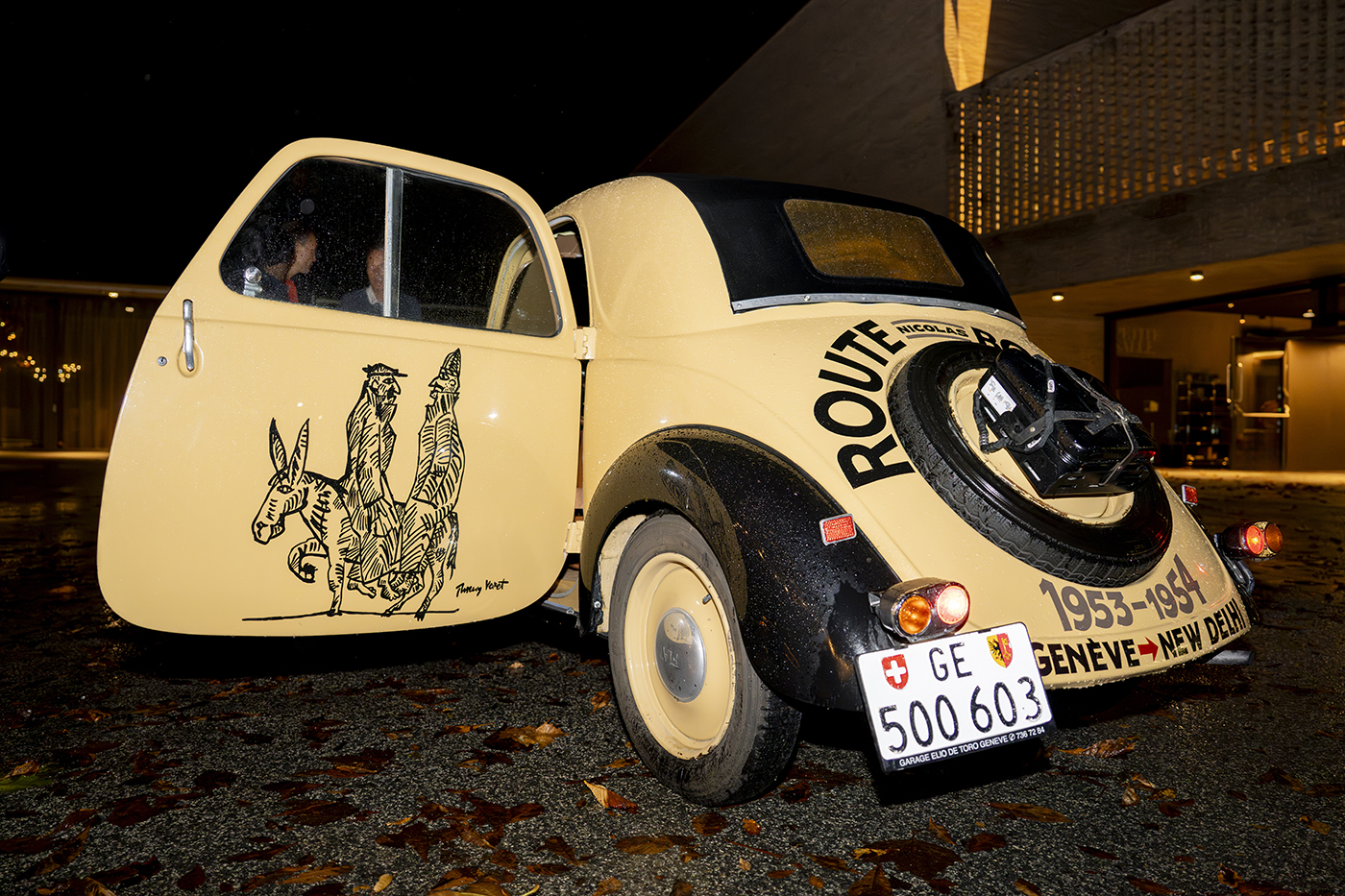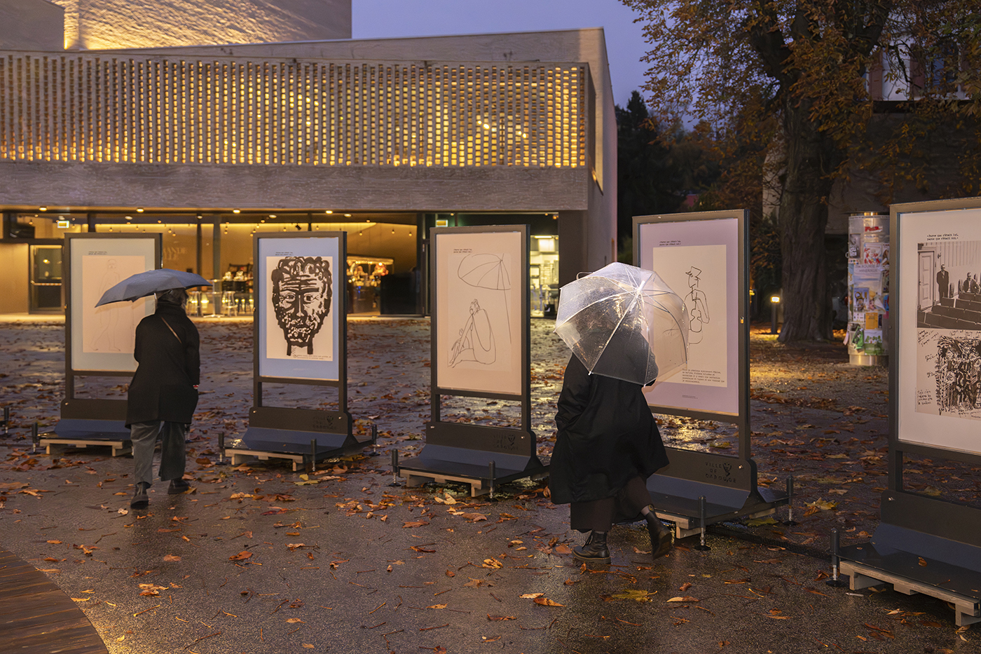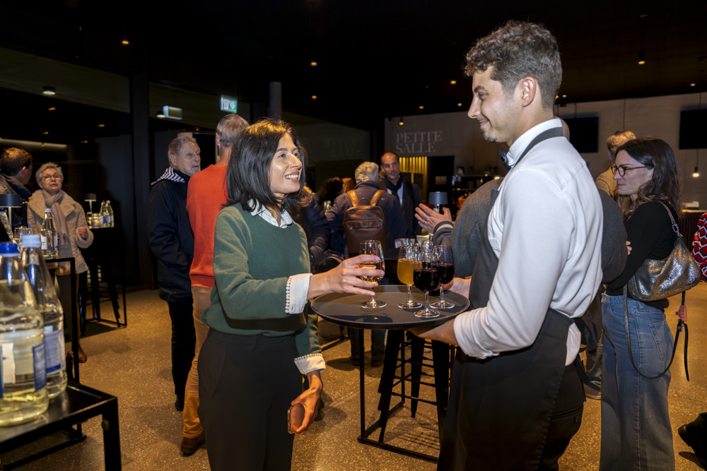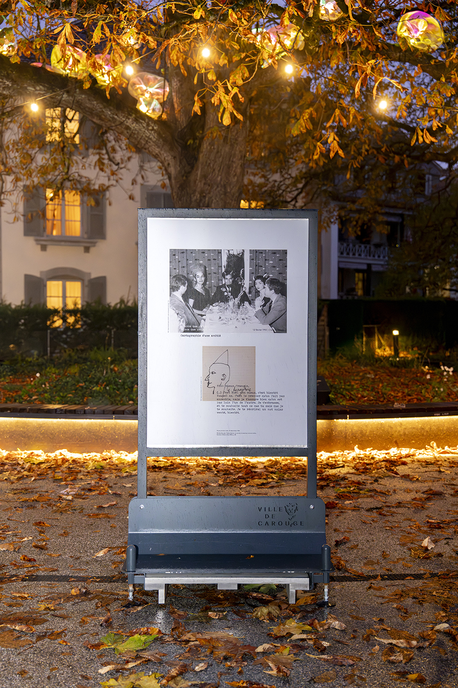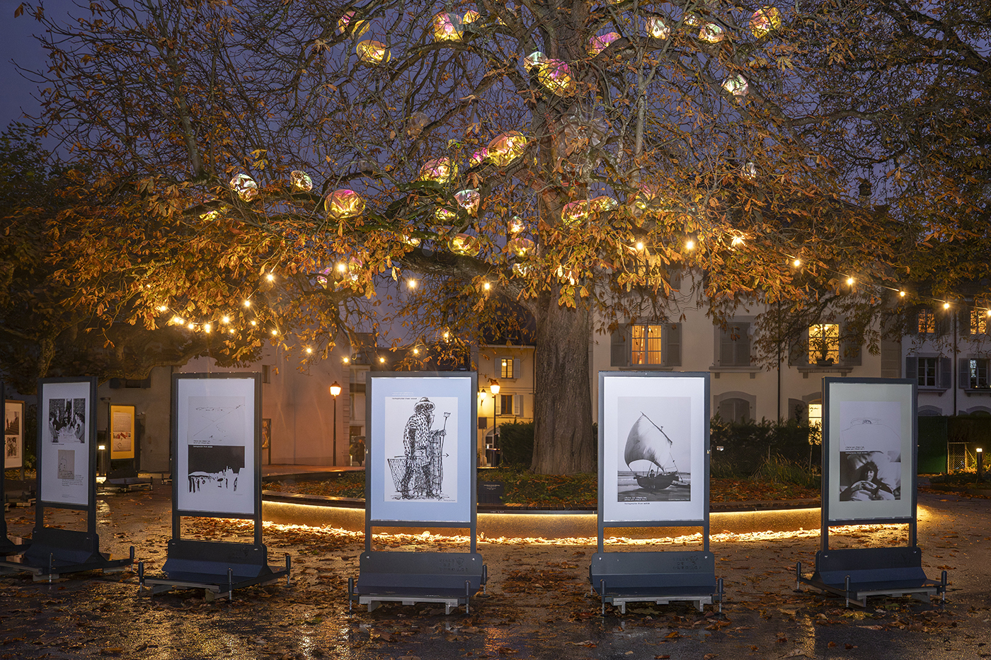 La soirée a débuté dans le foyer du Théâtre de Carouge, où les participantes et participants ont pu découvrir les 17 panneaux de cette exposition en plein air installée sur l’esplanade de la Salle des fêtes.