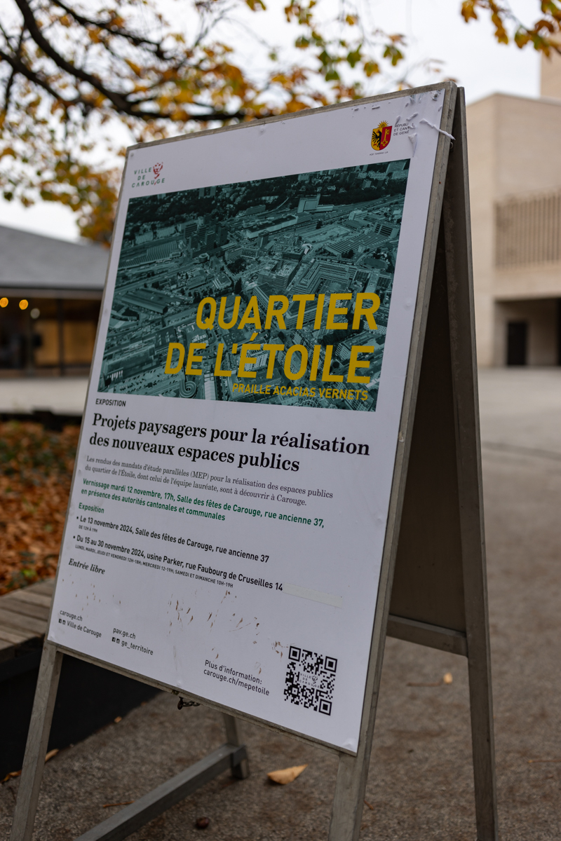 Conscients des enjeux de l’espace public, la Ville de Carouge et le Canton (DPAV) ont organisé en 2024 un concours sous la forme de mandats d’étude parallèles (MEP) pour l’élaboration d’un projet paysager des espaces publics de l’Étoile. Dix équipes se sont retrouvées en concurrence, le processus s’est déroulé de janvier à septembre 2024 en deux tours. La procédure a intégré une démarche participative novatrice, qui a permis d’associer des représentantes et représentants de la société civile et différents acteurs du quartier aux réflexions.
