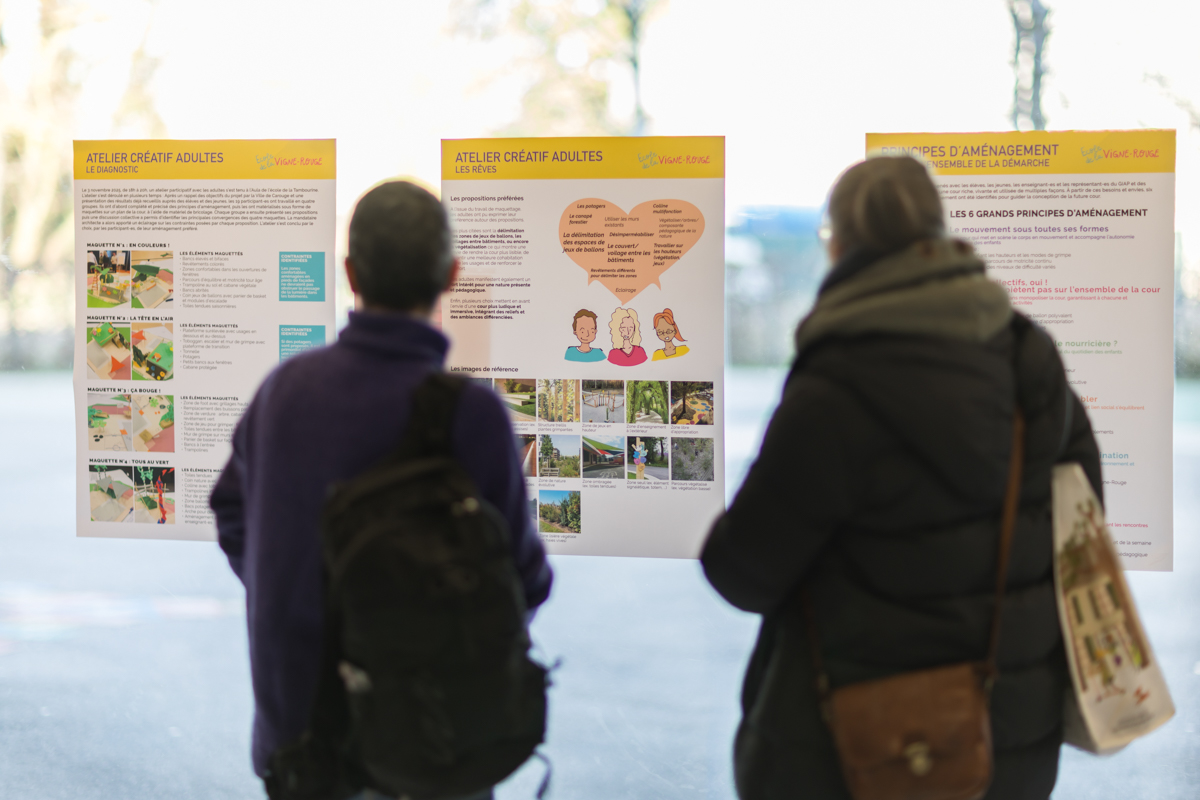 Lancée à l’automne 2025, la démarche participative s'est terminée par une exposition présentant le réaménagement de la cour. La maire, Sonja Molinari, et le conseiller administratif, Patrick Mutzenberg, présents pour l’occasion, ont pu échanger avec la population carougeoise sur ce projet.