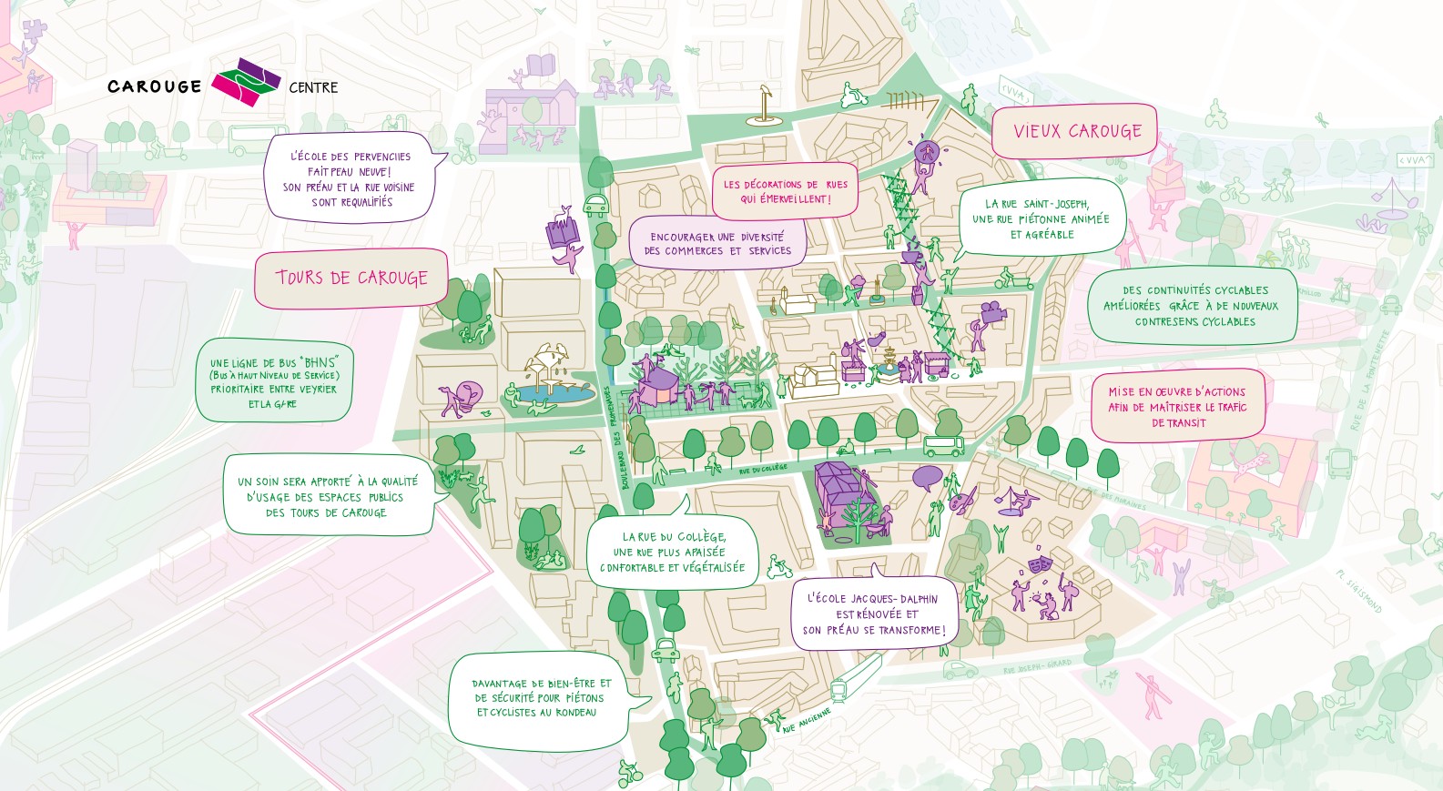 Dans ce secteur, où aucun nouveau quartier n’est prévu, l’accent est mis sur l’amélioration progressive de l’espace public pour favoriser les rencontres et la qualité de vie.