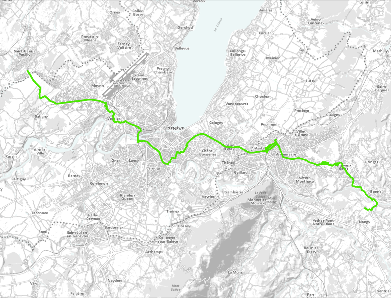 La Voie verte d’agglomération a pour ambition la création d’un itinéraire de mobilité douce à large échelle, entre Saint-Genis et Annemasse. Cette infrastructure, qui s’étend sur 22 km, traversera 14 communes de l’agglomération genevoise. Il s’agit d’un développement conséquent du réseau piétonnier et cyclable, qui conjugue les atouts paysagers, écologiques, urbanistiques et touristiques des bords de l’Arve.